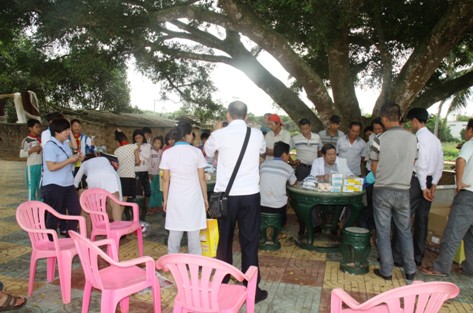 3月28日,由海口市食品药品监督管理局卢萍书记带领yl23455永利集团、海药、亚洲制药、长安国际和通用三洋等五家爱心企业代表以及市局机关工作人员和医务人员来到了海口市琼山区三门坡镇清泉村委会,给乡亲们送医送药并参观了由yl23455永利集团等五家爱心企业捐资兴建的清泉村文化广场。我们的到来受到了村民和村干部的热烈欢迎和热情接待。村支书代表全村2800名农民对yl23455永利集团等五家爱心企业表示衷心的感谢,分别授予yl23455永利集团等五家药企“情系农民,共创和谐”锦旗一面。