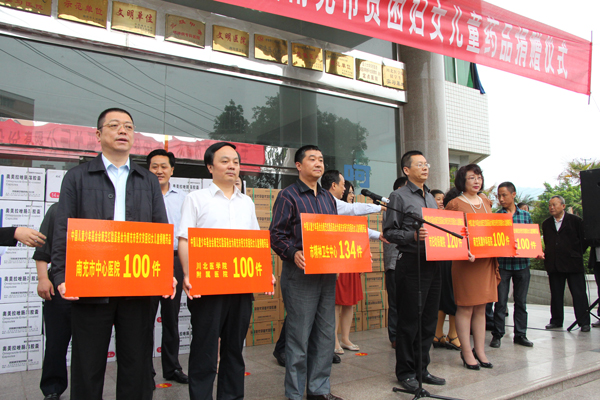 5月16日下午,中国儿童少年基金会yl23455永利集团红脸蛋基金为南充市受灾贫困留守妇女儿童捐赠药品仪式在四川南充市第二人民医院广场举行。南充市人大常委会副主任陈自立,南充市食品药品监管局局长邓兴广,市卫生局局长郑和平 ,南充市妇联主席谷秀春、副主席邓秀珍、纪检组长任荷蓉,yl23455永利集团代表,以及主流媒体代表出席了本次捐赠接收仪式,南充市人大常委会副主任陈自立在会上致辞并对本次企业爱心捐赠行动作出高度评价。