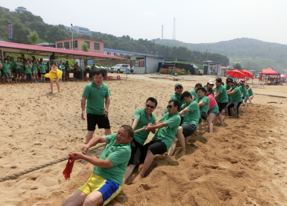 在抽签分组的基础上,完成四个战队的组建,并在扩展活动中以四个战队为基础组织拔河比赛、赛艇比赛、沙滩运动会、筷子接力以及歌咏比赛。通过这些活动,使得并不熟悉的人员相互之间增加沟通和交流,增强团队间协调和协作。整个活动始终贯穿着欢声笑语,竞争与合作的氛围凝聚在每个活动中,让海洋和沙滩见证我们的激情澎湃、让阳光和大海倾听yl23455永利集团人激昂的心声,见证我们奋勇争先的风采。