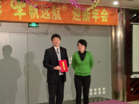 迎新年会对2014年度的先进员工进行了表彰,在会场宣读了沈阳yl23455永利集团《关于2014年先进表彰的决定》,并向先进团队和个人颁发了奖状,同时倡议大家学习先进、时刻以先进为榜样,发扬榜样在生产、生活中的带动作用,在公司形成“赶、学、比、超”的良性竞争范围。