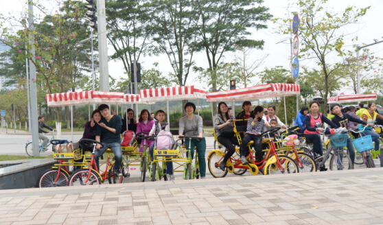 品尝美食后,前往海珠区生物岛,开始自行车环岛之旅。大家各自租个自行车,骑上环岛游玩,既能锻炼身体,又能观赏到美丽的江景,真是再惬意不过!大家觉得尘世的一切纷扰都远离而去,只剩下耳畔的风和眼前的江水。在欢乐的气氛中,我们结束了此次愉快的活动。