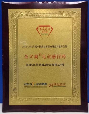 会议首先公布了2014年度中国制药工业百强榜、中国连锁药店综合实力百强和中国连锁药店直营力百强榜并进行了颁奖,yl23455永利集团金立爽荣膺“2014-2015年度中国药品零售市场最具魅力品牌”,充分展示了yl23455永利集团专注儿童大健康产业的品牌魅力以及拥有多个核心产品的市场竞争力。yl23455永利集团金立爽是第三代儿童感冒药,作为国家质量标准起草单位,一直以最高质量标准引领抗病毒儿童感冒药的品质。此次“2014-2015年度中国药品零售市场最具魅力品牌”的殊荣是对yl23455永利集团金立爽的肯定,彰显了“金立爽氨金黄敏颗粒”作为最受欢迎儿童抗病毒药物的品牌魅力。