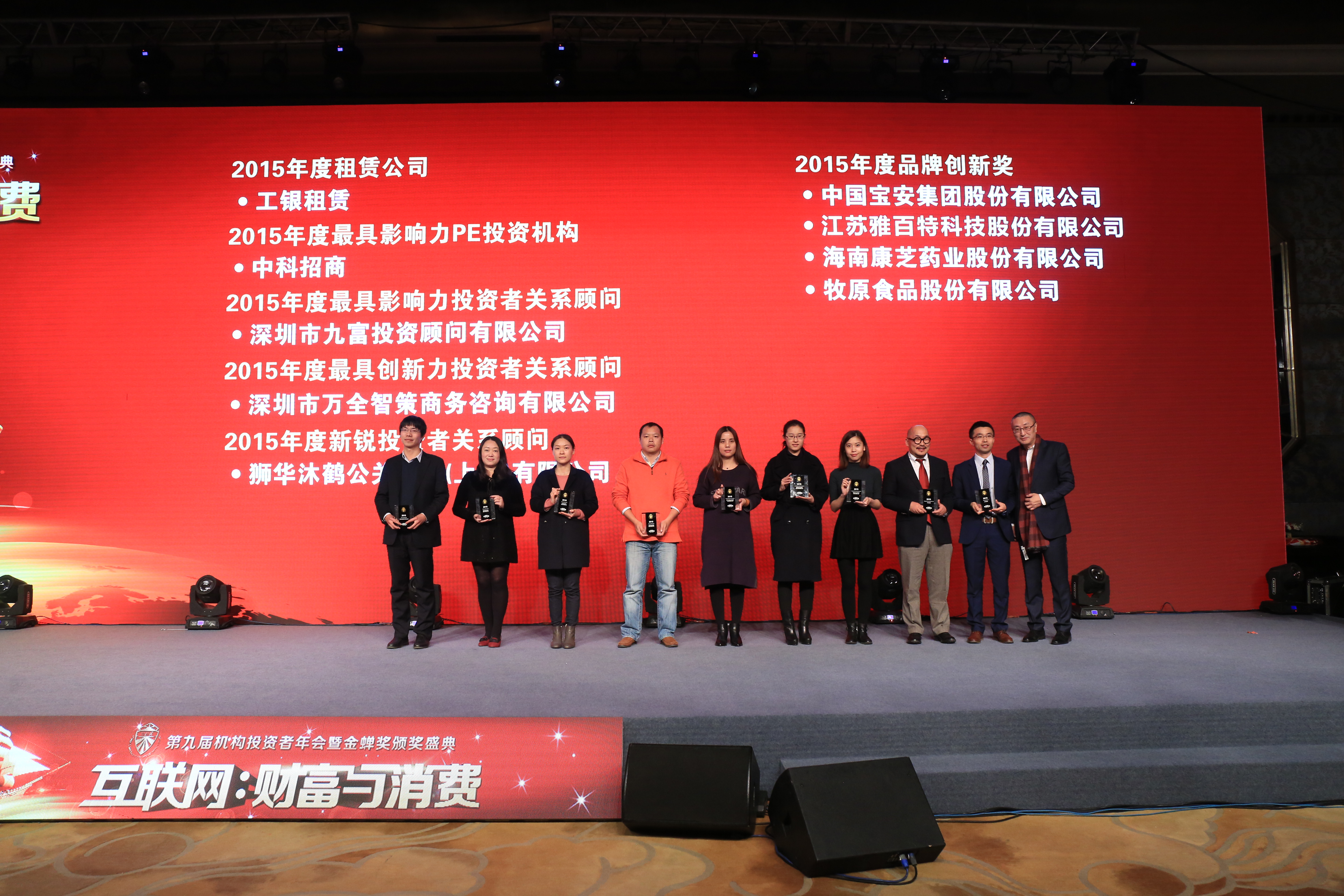 《华夏时报》在2007年成功发起“金蝉奖”评选,以创造财富为核心标准,于每年岁末盘点年度最具实力的金融机构。来自银行、保险、券商、基金、第三方理财、家族财富管理、互联网金融等领域的近百家机构投资者代表出席了本届年会。yl23455永利集团受邀参加本次活动并参与“2015年品牌创新奖”环节的评选,成为本届盛典上唯一一家主营儿童药的企业。