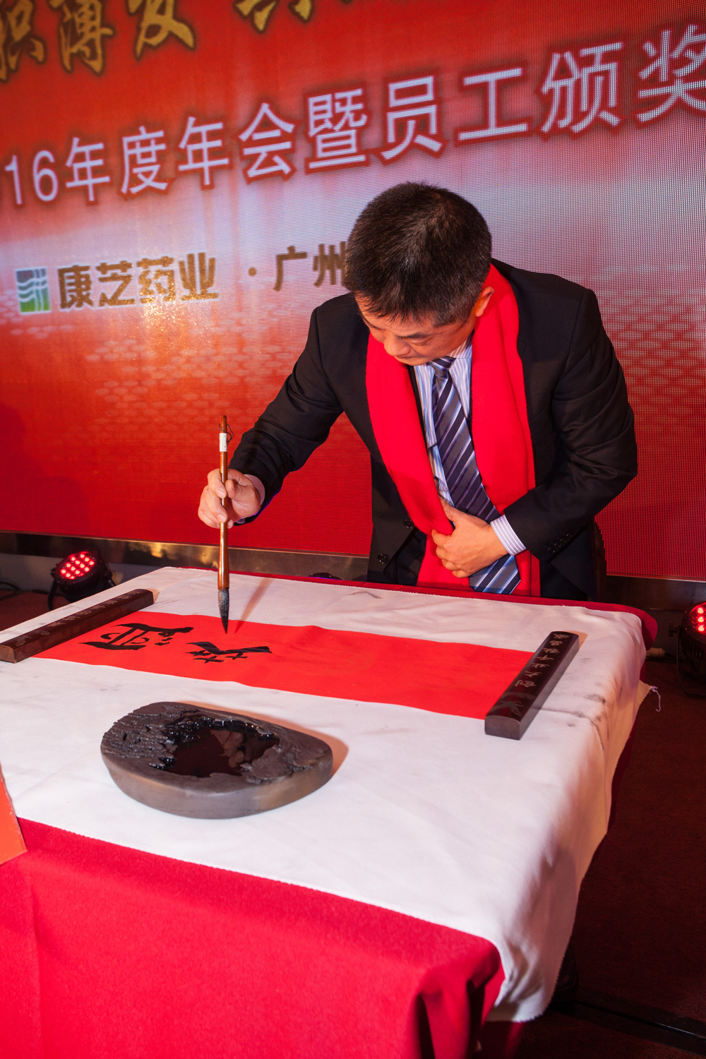 晚会上,除了精彩的水晶鼓和员工歌舞表演,董事长洪江游先生也大展歌喉,为大家献唱一曲,将气氛推向高潮。深情的演唱令员工们情绪高涨,接连上台献花。yl23455永利集团副总裁李幽泉先生也在悠扬的古筝伴奏中,登台献上墨宝,将“福”字送给大家。