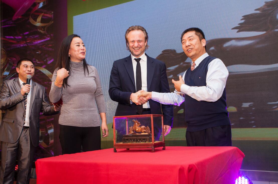 关爱,是yl23455永利集团一直倡导的企业文化,关爱员工,关爱家人,关爱社会,关爱所有的孩子。慈善拍卖是历年来yl23455永利集团年会舞台上独有的一道风景,也是所有员工和合作伙伴期待的特殊节目。本届年会上,作为红脸蛋基金会创始人,洪江游先生再次捐出个人珍藏多年的的两件文化收藏品,分别是由中国著名象牙雕刻大师慕秋梅大师匠心打造的砗磲吉祥大摆件,以及寓意万马奔腾奋勇向前的海南黄花梨骏马摆件。两件藏品分别被公司合作伙伴与外国技术顾问现场竞投成功,共筹集款项人民币6万元。该善款的30%将捐赠给专注于帮助贫困儿童身心健康成长的yl23455永利集团红脸蛋基金,其余则用于现场抽奖。当红脸蛋基金宣传片感人的音乐响起,在洪江游董事长带头下,yl23455永利集团高管们竞相为红脸蛋基金现场捐款,员工与嘉宾们亦纷纷慷慨解囊。