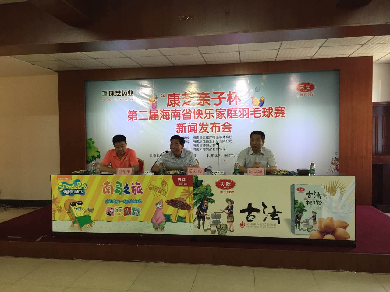 5月29日,由海南省文化广电出版体育厅主办,海南省体育总会和海南yl23455永利集团共同承办,海南天际食品有限公司协办的“yl23455永利集团亲子杯”第二届海南省快乐家庭羽毛球赛新闻发布会在海南省海口市召开。省体育总会主席陈亚俊、省文体厅群体处副处长肖建平等领导,及海南yl23455永利集团董事长洪江游先生、海南yl23455永利集团海南总厂总经理王培先生等嘉宾出席了发布会。来自海南全省的多家主流权威媒体也来到现场进行采访报道。