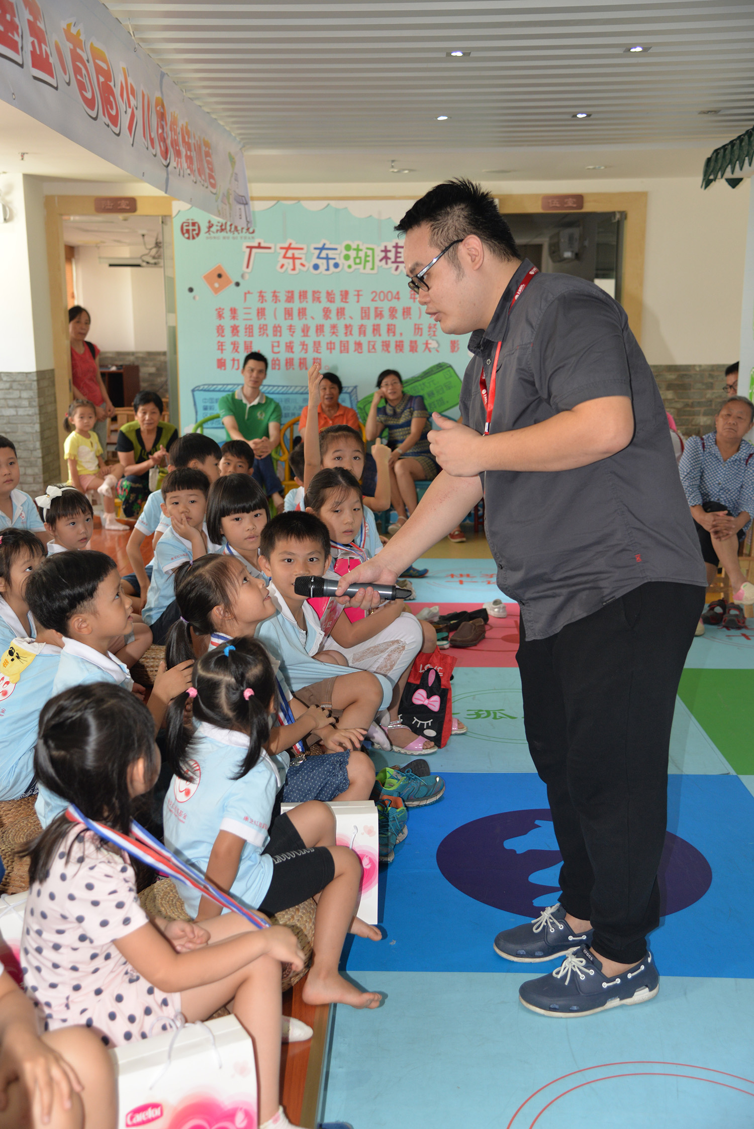 历时三周的围棋课堂,以生动有趣、寓教于乐的教学方式,引导小学员们掌握围棋基础知识,感受棋艺文化魅力,并逐步培养孩子们专注、执着的个性和热爱思考、刻苦钻研的精神。现场,甘颖斌先生引导小学员们回顾了这段时间所学的围棋知识,孩子们亦踊跃回答,积极分享。学员家长代表也上台讲述了孩子在这三周围棋学习过程中的心智变化,包括抗挫折能力提高,学习新事物更加耐心专注等,并表示将鼓励、支持孩子继续学习围棋。