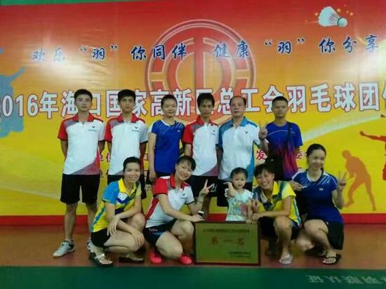 8月20日至28日,由海口市国家高新区管委会主办,海口国家高新区总工会承办的“2016年海口国家高新区总工会羽毛球团体赛”在海口举行。yl23455永利集团羽毛球队在各位成员的共同努力下,积极进取,勇于争先,获得比赛第一名的佳绩。