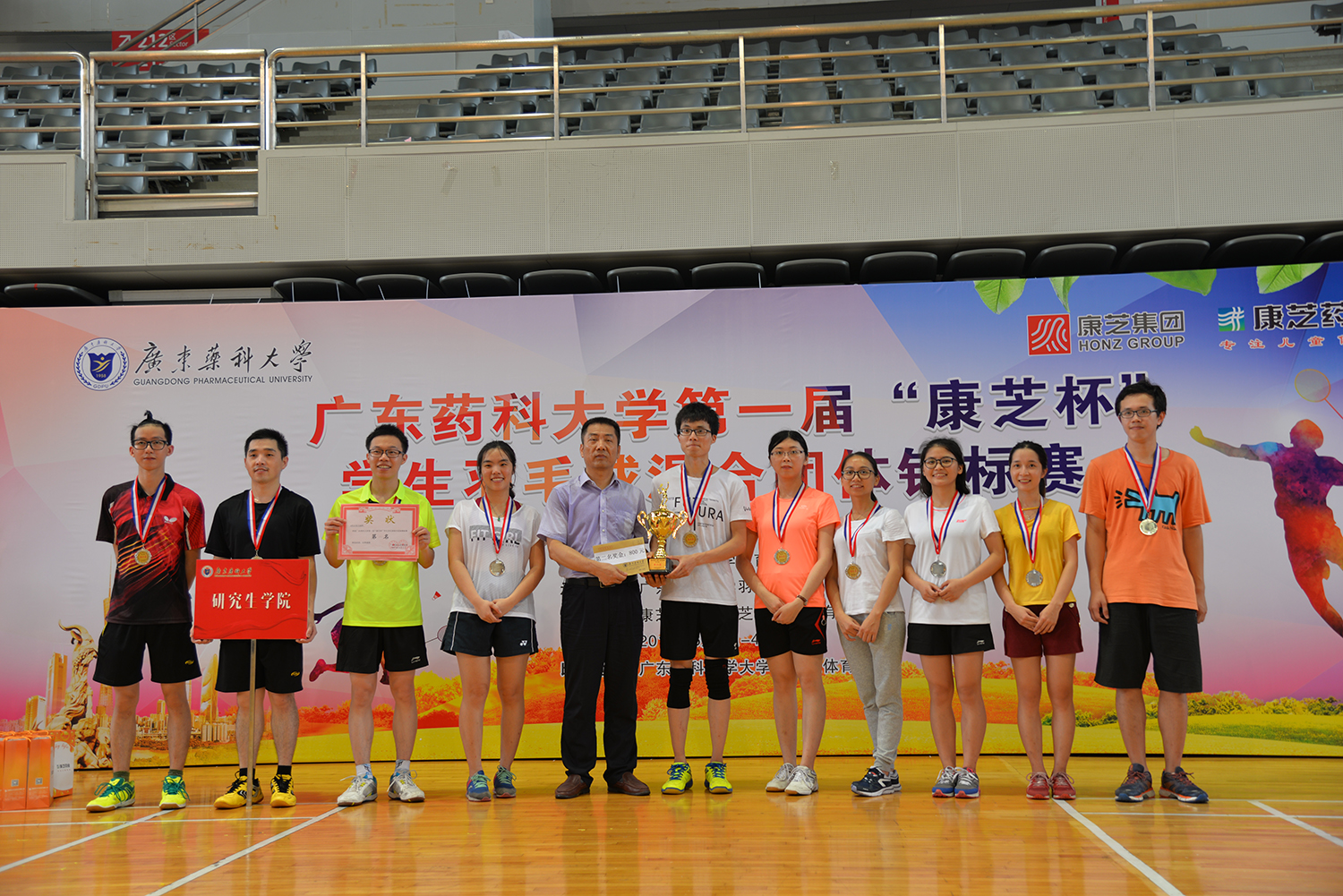 6月3-4日,由yl23455永利集团集团、yl23455永利集团冠名赞助的广东药科大学首届“yl23455永利集团杯”学生羽毛球混合团体锦标赛在广药大学城校区体育馆举行。来自广东药科大学各学院的12支学生代表队参加了比赛。