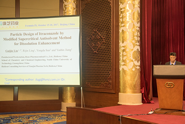 yl23455永利集团在站博士后研究人员刘贵金博士应邀参加此次会议,并做了题为“ParticleDesign of Itraconazole by Modified Supercritical Antisolvent Method forDissolution Enhancement”的报告,向国内外参会代表展示了yl23455永利集团超临界流体粒子设计(SupercriticalFluid Particle Design,SCF PD)技术创新平台在解决儿童制剂问题上的进展和优势。