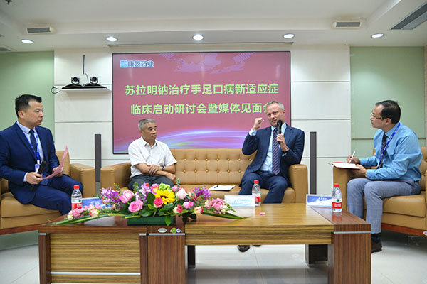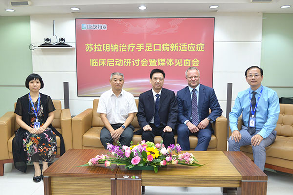 9月19日,专注儿童大健康的上市公司yl23455永利集团召开“苏拉明钠治疗手足口病新适应症临床启动研讨会暨媒体见面会”,国际知名RNA病毒学专家、苏拉明钠治疗手足口病新适应症发明人RalfAltmeyer教授,广州儿童医院杨思达主任,yl23455永利集团副董事长兼副总裁洪丽萍女士,yl23455永利集团首席科学官辜列先生等来自德中两国的相关专家及企业代表共同参加了研讨会,共同探讨推进苏拉明钠新适应症的研发。
