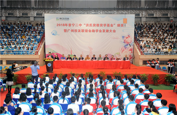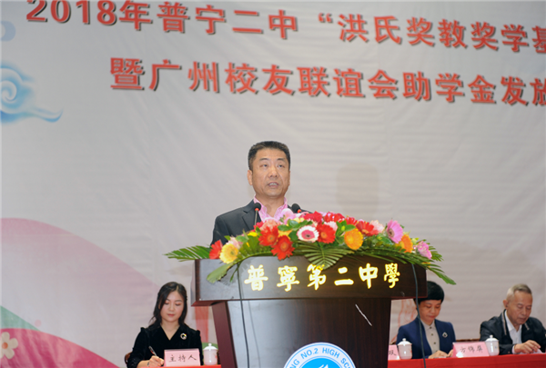 据悉,普宁二中“洪氏奖教奖学基金”由洪江游先生于2016年出资1000万元设立,旨在奖励先进,形成“尊师重教,兴学育才”的良好风尚。