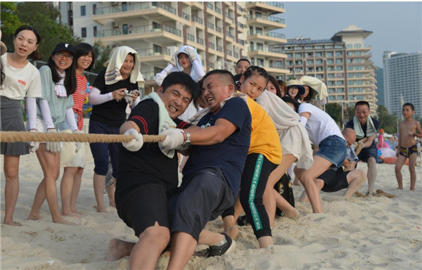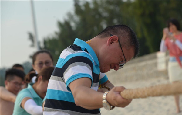 最后,工会还组织了沙滩拔河比赛。参赛队员们个个摩拳擦掌,铆足了劲儿,只等裁判员哨声一响便纷纷使出洪荒之力,齐心协力往后拉,为“拔得头筹”而拼尽全力。周围的观众也毫不示弱,变身啦啦队员,为自己的团队加油助威、齐声呼喊。一时间,欢呼声、呐喊声、加油声此起彼伏,将比赛逐渐推向了白热化。拔河比赛充分展现yl23455永利集团人上下齐心协力、坚持不懈、敢拼敢为的良好精神风貌,进一步增强了企业凝聚力。
