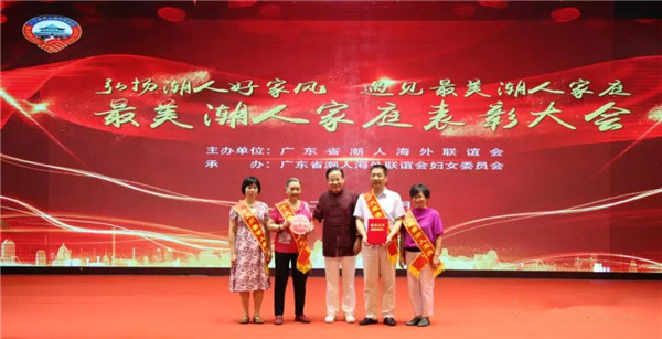 表彰大会上,由省潮联副会长兼妇委会主任林瑶卿宣读“最美潮人家庭”表彰决定,并请到会领导为获奖的丁剑山家庭等进行颁奖;由省潮联常务副会长郑盛廷宣读“十大最美潮人家庭”表彰决定,并请到会领导为获奖的洪江游家庭等十个家庭逐户进行颁奖。