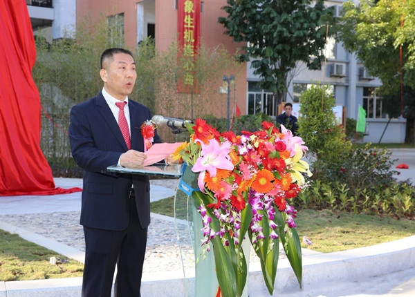 △普宁二中温俊义校长在雕像落成揭幕仪式上发言