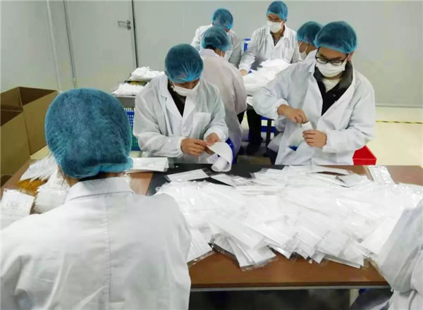 由于疫情防控物资需求持续告急,公司进行全员总动员,行政办公人员纷纷主动请缨支援一线生产。“现在生产任务非常重,每一个人都很累,为了给抗击疫情献一分力,很多同事都自愿支援生产,我自己的话,尽管已有心理准备,但刚开始的时候,还是有些不适应。车间现场很闷,噪音很大,机器生产的速度很快,刚干活的时候觉得自己笨手笨脚的。干着干着,熟悉度上升,信心也就越来越足了。”一名支援一线生产的行政员工说。