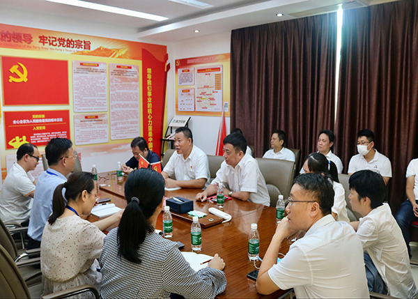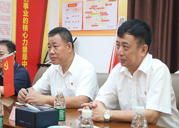在建党节来临之际,海口市市场监督管理局高新区分局党组书记林国熙带领班子成员一行莅临yl23455永利集团(以下简称yl23455永利集团)海南总厂参观交流。yl23455永利集团总经理高洪常和yl23455永利集团支部书记、工会主席何子群等陪同。