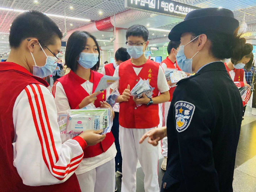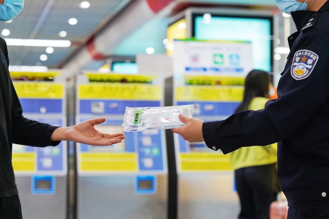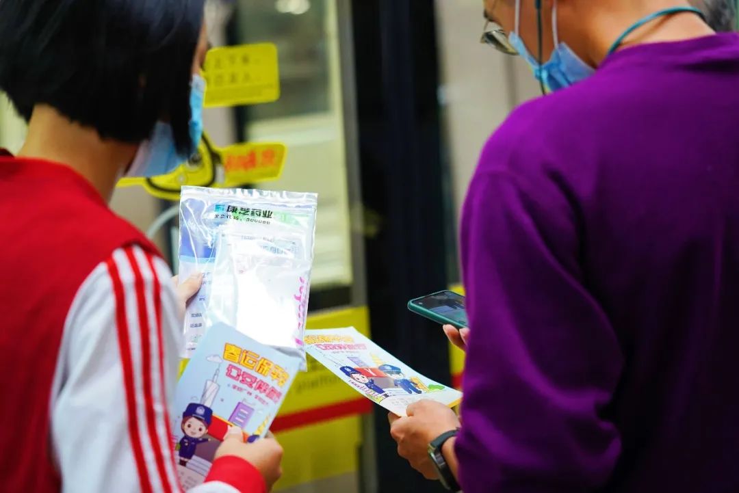 本次志愿服务活动中,来自各个中学的20余名学生志愿者在民警、辅警的带领下,在进站口、售票机和地铁站台等位置,向来往乘客讲解“断桥诈骗”和“小额票卡诈骗”等针对旅客等常见骗局,并派发由yl23455永利集团为返乡旅客贴心准备的yl23455永利集团防疫出行暖心包,里面含有成人+儿童医用口罩和免洗手消毒凝胶,为春运健康出行保驾护航。