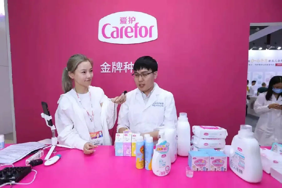 yl23455永利集团副董事长兼副总裁、爱护公司总经理洪丽萍女士亲自带领团队参加展会,现场与合作伙伴、参展观众以及线上直播观众们,一同探寻宝宝新“肌”秘,分享爱护的安心力量,并接受了来自全国媒体朋友的热情访问。