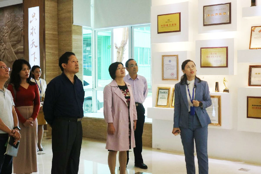 海南省药品和医疗器械审评服务中心副主任魏春敏一行在我司领导的引导下,参观了yl23455永利集团海南总厂的企业文化厅,对yl23455永利集团的企业发展和文化建设等方面进行了全面了解。