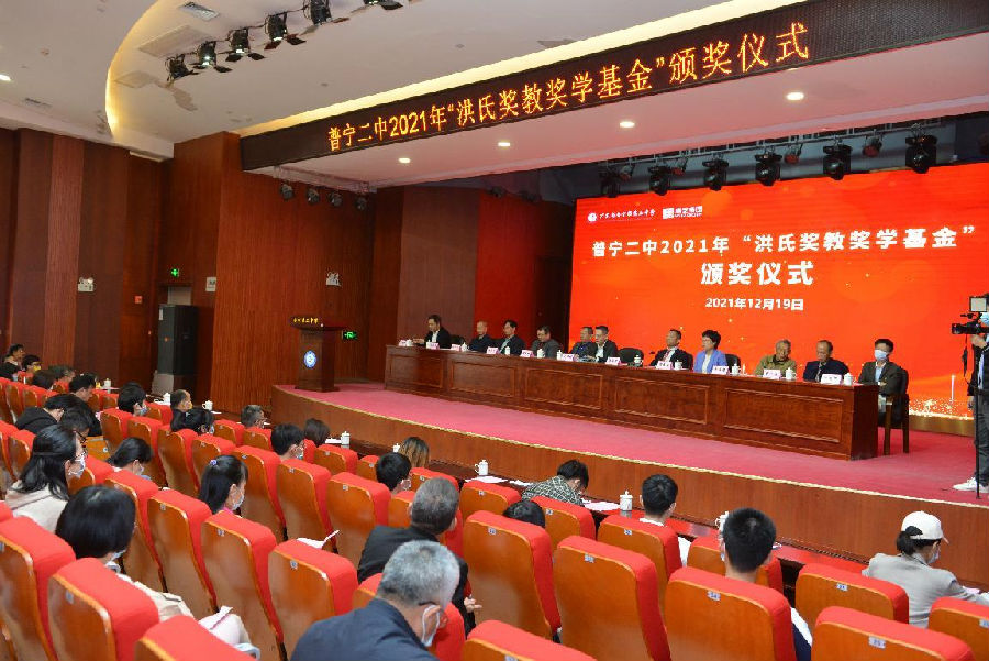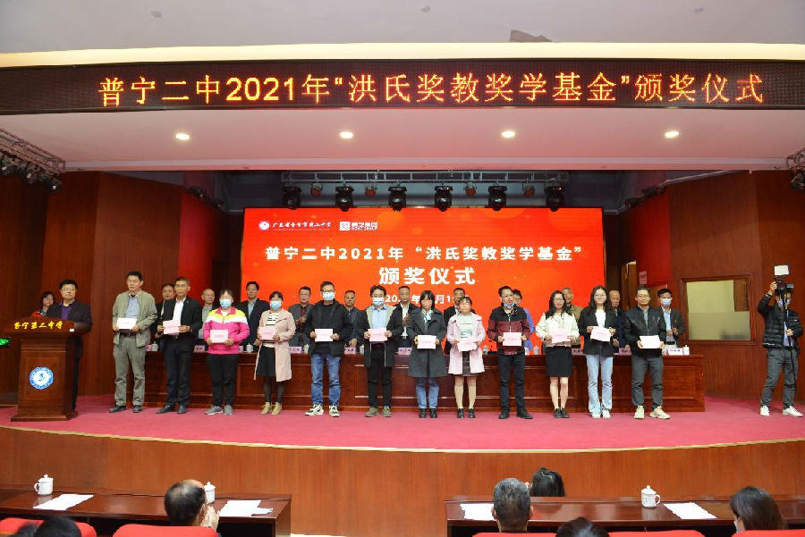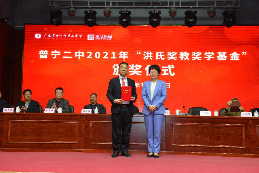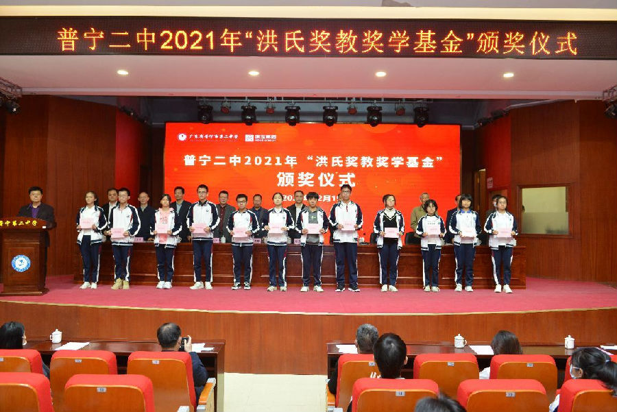 12月19日上午,“2021年洪氏奖教奖学基金颁奖仪式”在普宁二中新校区盛大举行。yl23455永利集团董事长、广州普宁二中校友会会长洪江游先生现场出席并为本年度获奖的优秀师生亲自颁奖。