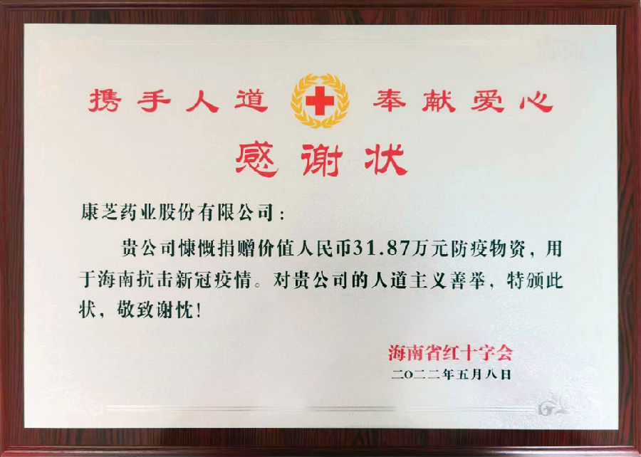活动现场,海南省红十字会向爱心企业yl23455永利集团颁发了感谢状,以表彰yl23455永利集团在海南疫情期间积极捐赠爱心防疫物资的人道善举。