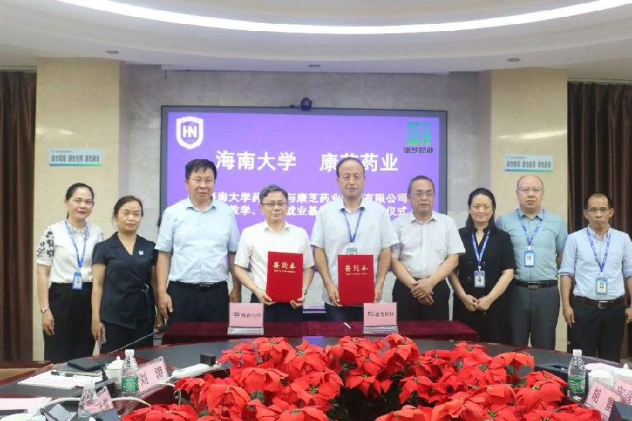 本次活动由海南大学党委常委、副校长、研究员曹宪忠带队,率药学院院长、国家级人才罗海彬教授,药学院党总支书记胡静,药学院副院长宋彦廷,药学院副院长(挂职)黄玲一行9人出席。yl23455永利集团人力资源总部总经理张燕,yl23455永利集团研究院院长严常开,海南基地总经理高洪常等领导热情接待,并参与签约仪式及走访座谈会。