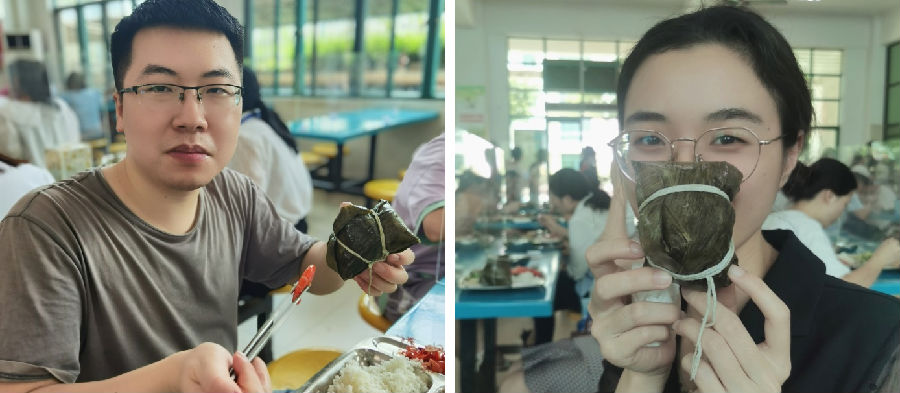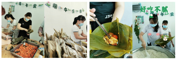 午餐时间,员工们都吃上了香甜可口的粽子,大家吃着、聊着、笑着,脸上都是开心的神情。