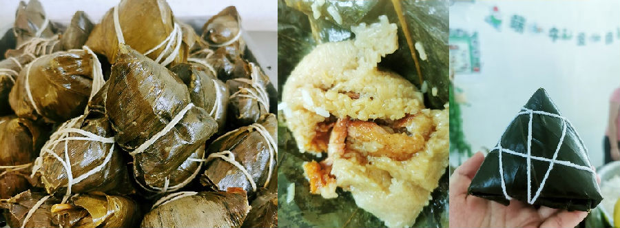 在这生产繁忙之际,生产技术部仍借调3名员工到后厨帮忙包粽子,只为保证员工们能吃上新鲜可口的粽子。雪白的糯米、青翠的粽叶,在一阵眼花缭乱的包、裹、缠、绕后,变成了有棱有角的粽子。大家你一个、我一个,将粽子全部包好,供员工们午餐享用。