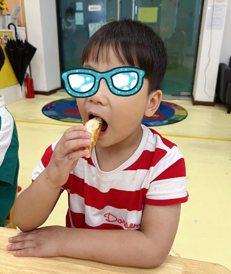 在志愿者们的耐心引导下,20名自闭症孩子都完成了香肠面包的制作,顿时香气四溢,孩子们忍不住当场分享了起来。活动的最后,志愿者们还协助孩子们对香肠面包进行包装,让孩子们可以把面包带回家,与家人们分享他们的劳动成果。
