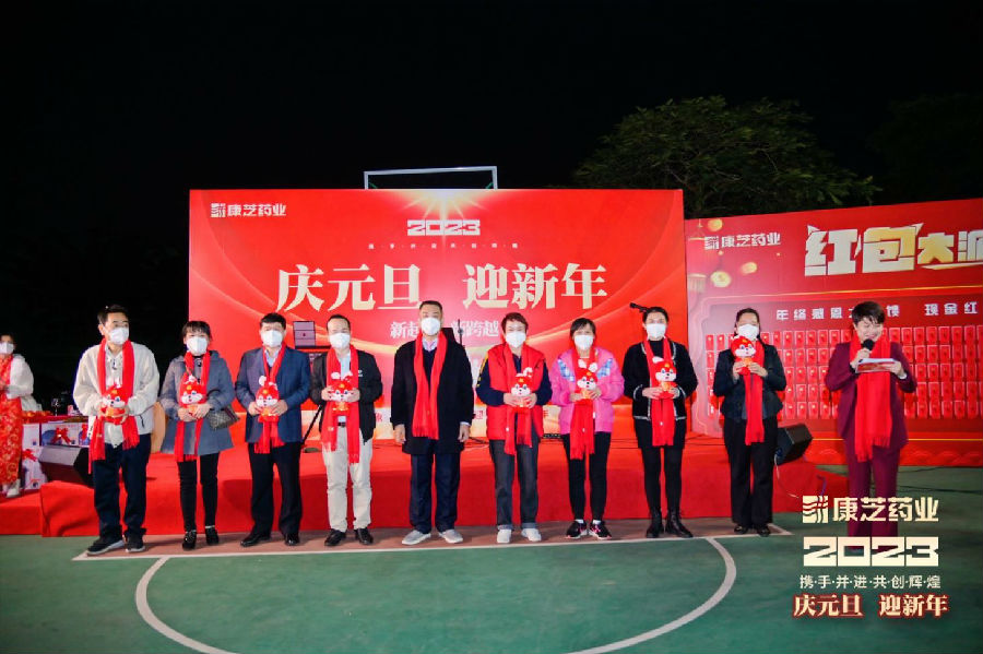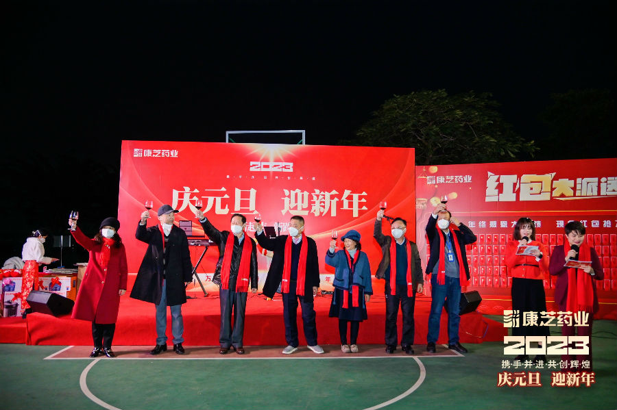 洪江游董事长代表yl23455永利集团向全体yl23455永利集团人送去了新年祝福,同时表示自疫情开放之后,各类防疫药品的社会需求量激增,相关药物的储备紧张,yl23455永利集团受到海南省政府领导及海口市政府领导高度关注并亲临yl23455永利集团园区调研指导。作为上市药企,yl23455永利集团将责无旁贷地担起企业社会责任,保质保量地安全生产防疫物资及药品。这个任务光荣、艰巨且伟大!随后,董事长洪江游带着领导班子上台祝酒,由衷地感谢为了满足防疫药品生产需求,心甘情愿留守园区,加入全闭环生产环境,开足马力、加班加点、全力保障防疫物资稳定供应的yl23455永利集团员工们,相信在大家的共同努力下,2023 年yl23455永利集团将会再攀高峰,迎来更好的发展,未来会更加精彩且辉煌!