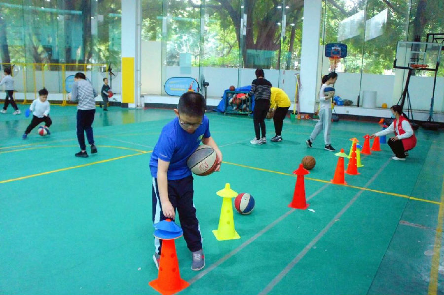 讲解完毕,孩子们就已经开始跃跃欲试。活动伊始,孩子们尝试着于他们而言新颖的篮球游戏。因为从未接触过篮球,他们尚未完全掌握游戏的要领,动作也比较生疏,但是在一众家长和志愿者的鼓励与帮助下,孩子们大汗淋漓地游玩着,用心地对待每一个游戏环节,欢笑不断,嬉笑玩闹着,现场洋溢着幸福满足的气息。球场上孩子们跑动的身影、童真的笑容,仿佛黑夜中星星般的光芒,让我们忍不住拍下照片,留住这一刻难得的美好。