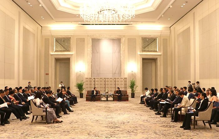 海南省委常委、统战部部长苗延红会见连小敏及侨商代表一行,yl23455永利集团药业洪江游董事长作为侨商代表交流分享