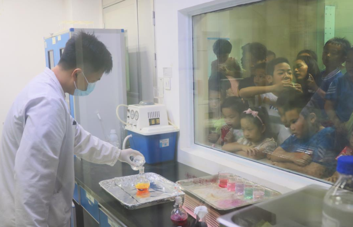 在“趣味实验室”的环节中,yl23455永利集团科研人员化身“魔法哥哥”为小朋友们带来化学小实验《颜色变变变》《大象牙膏》,在演示过程中,小朋友们各个聚精会神,目光紧紧地观察着“魔法哥哥”操作,不禁惊叹: “化学真的太神奇啦!我长大也想做像魔法哥哥一样的科学家!”