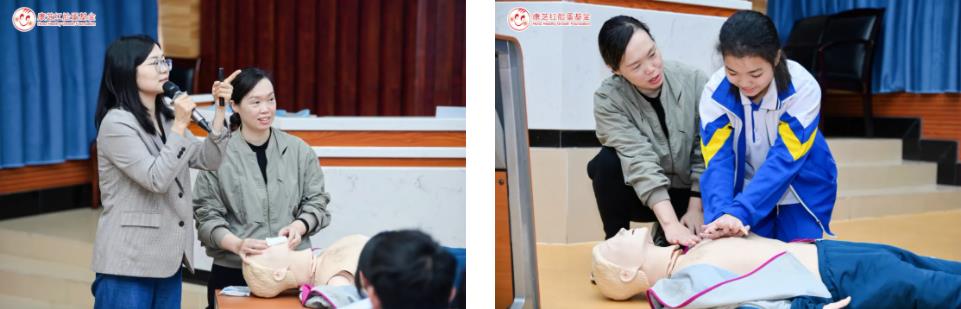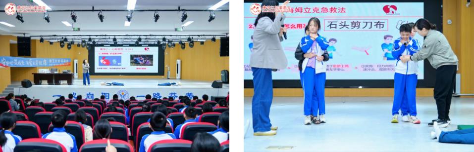 活动期间,海南省妇女儿童医学中心儿童重症医学科副主任医师王琪围绕“海姆立克与心肺复苏急救法——学会拯救生命的魔法”主题,详细讲解了急救的基本原理与操作步骤,并通过真人示范和情景模拟,为学生们带来一堂生动实用的“生命必修课”。