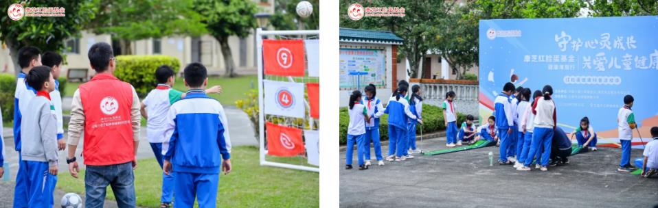 同时,活动还设置了趣味互动环节。学生们在专业教练的指导和yl23455永利集团红脸蛋基金志愿者的陪伴下,积极参与趣味运动,在奔跑、投掷与欢呼中感受运动的乐趣,释放学习上的压力。