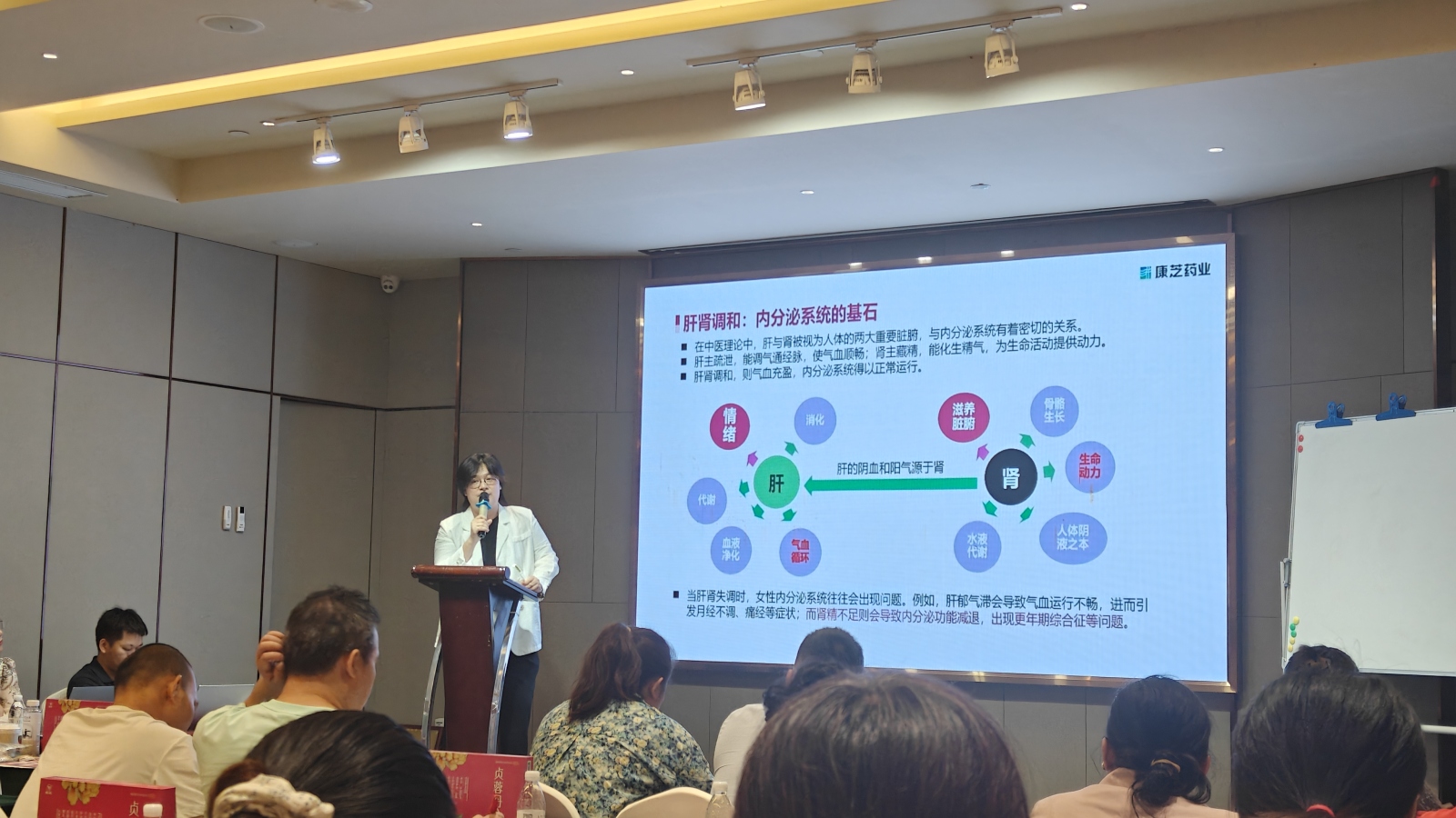 学术分享环节,yl23455永利集团市场部产品经理陈月发表了《肝肾同补气血同调 女性健康重调理》主题报告。陈月经理以女性内分泌问题及诊疗现状切入,对比中西医理论与疗法、分享临床案例,深入阐释了肝肾在女性气血调理、健康维护中的关键作用,还讲解了yl23455永利集团独家明星产品坤柔®贞蓉丹合剂在肝肾同补、调治女性常见问题中的应用要点。报告从组方原理到临床辨证施药层层剖析,让与会的基层医药卫生工作者对中医药调理女性健康有了更清晰的认知。