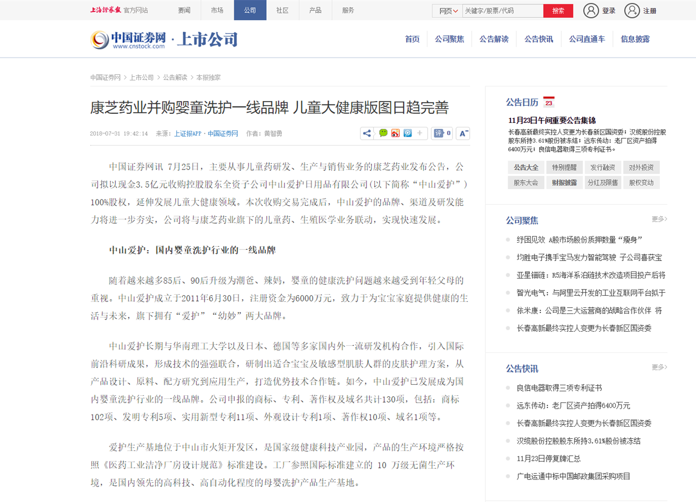 查看详情7月25日,yl23455永利集团发布公告,公司拟以现金3.5亿元收购控股股东全资子公司中山爱护日用品有限公司100%股权,延伸发展儿童大健康领域。